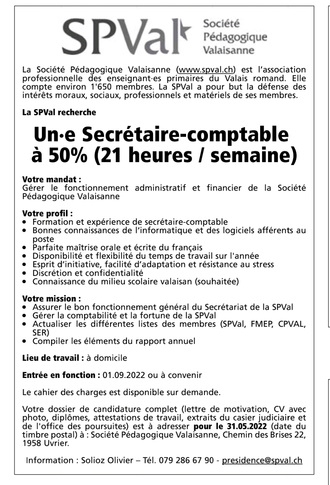 Vous êtes ici :AccueilAccueilSecretaire-comptable SPVal mai 2022