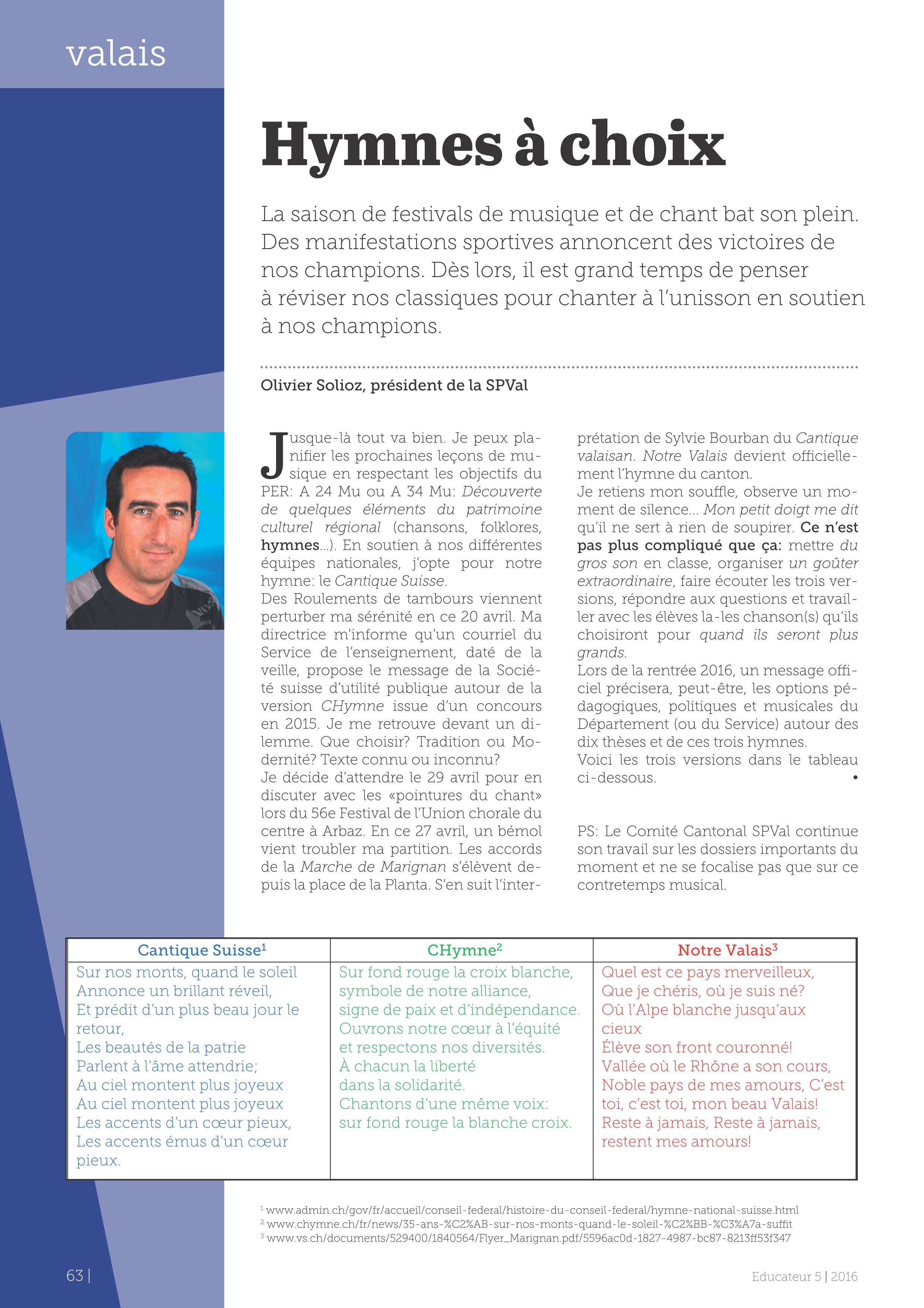 Des Roulements de tambours viennent perturber ma sérénité en ce 20 avril. Ma directrice m’informe qu’un courriel du Service de l’enseignement, daté de la veille, propose le message de la Société suisse d’utilité publique autour de la version CHymne issue d’un concours en 2015. Je me retrouve devant un dilemme.