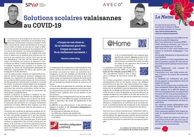 Les écolier·ères et les enseignant·es valaisans, comme leurs homologues romand·es, se souviendront longtemps de l’annonce faite ce fameux vendredi 13 mars 2020 : «Les écoles du canton sont fermées du 16 mars au 30 avril 2020. Les élèves ne sont pas en congé. Ils effectueront les activités transmises par les enseignant·es. Le but visé est de maintenir une continuité pédagogique. » Cette annonce communiquée en fin d’après-midi, juste avant le départ pour le weekend, était attendue par certain·es et une surprise pour d’autres. Dans tous les cas, une effervescence s’est très vite fait ressentir dans les écoles. Les directions ont transmis les éléments à communiquer aux élèves. Le mot d’ordre était de prendre tout le matériel nécessaire pour travailler à la maison. Les consignes du Service de l’enseignement détaillaient les différentes responsabilités des élèves, des parents, des enseignant·es et des directions.