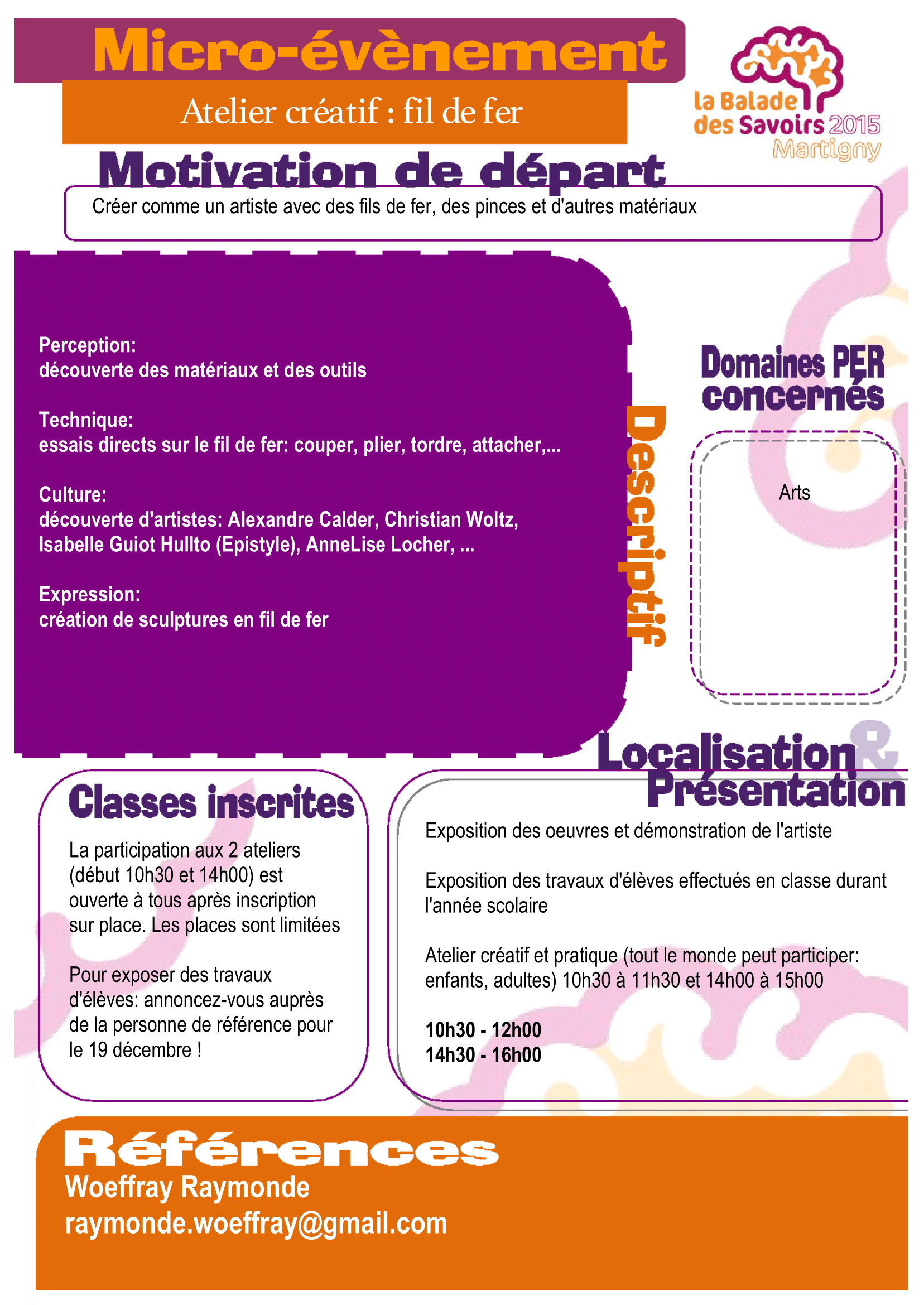 Vous êtes ici :AccueilMicro-événementsSurvol des fiches de projetsAtelier créatif : fil de fer