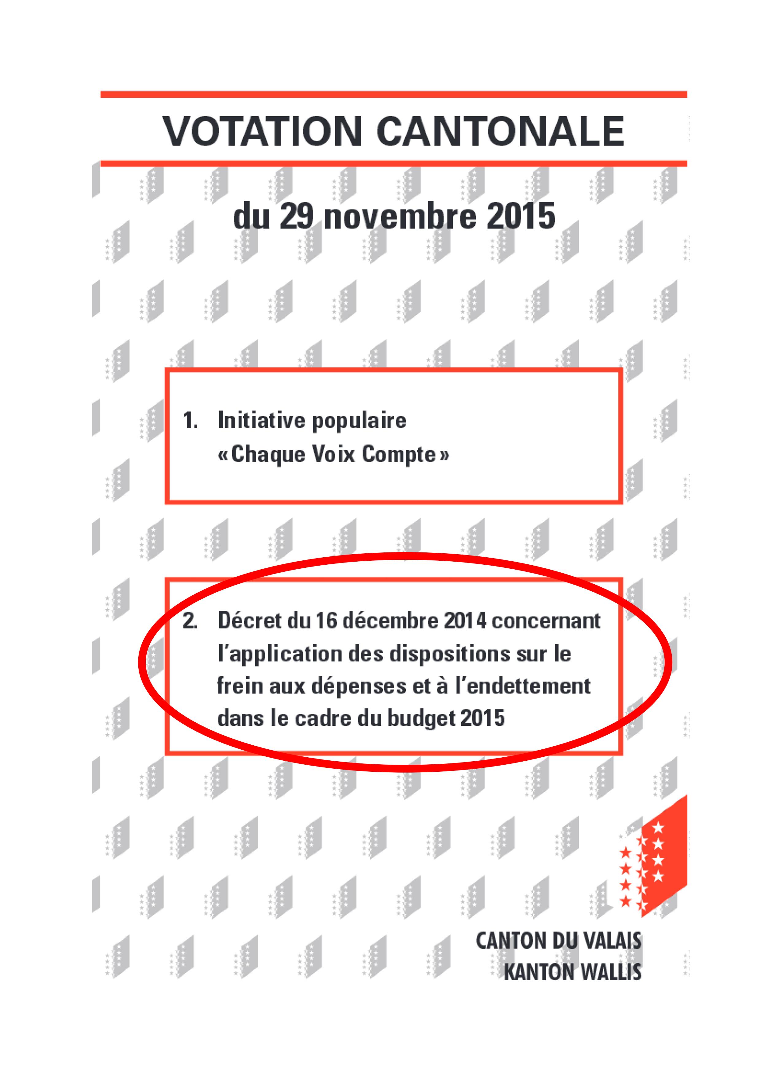 Page de couverture de la brochure de l'Etat du Valais au sujet des votations du 29.11.2015.