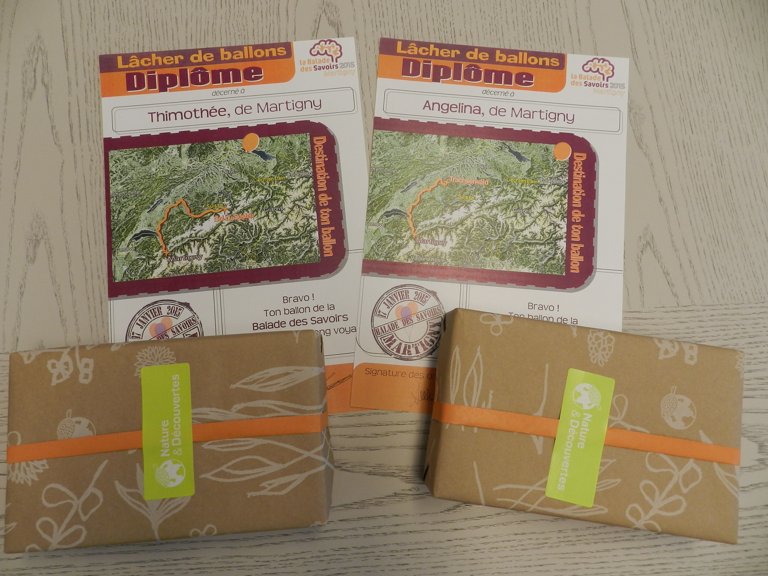 Diplômes pour la remise des prix du lâcher de ballons de la BDS 15.