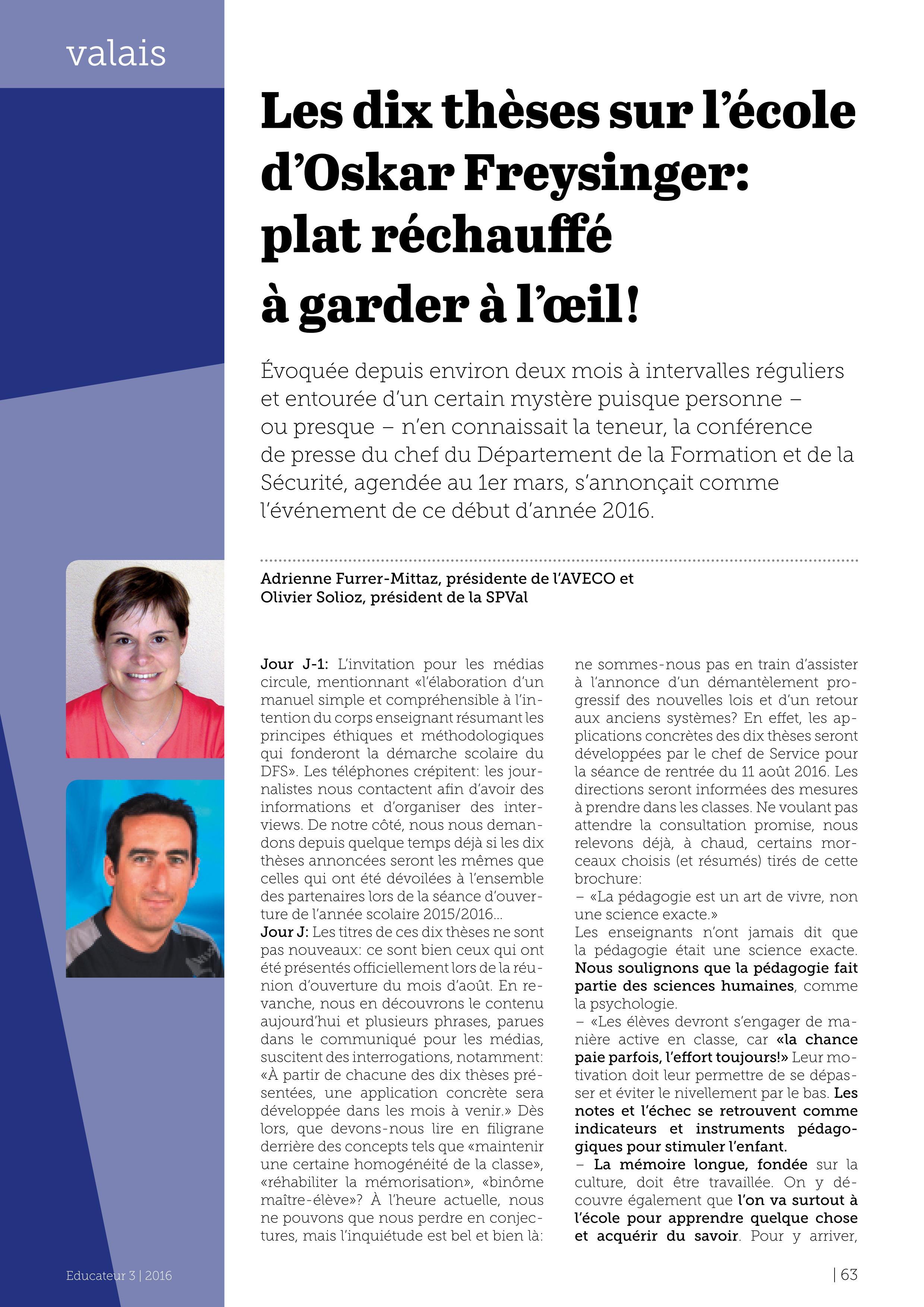 Les 10 thèses sur l'école d'Oskar Freysinger : plat réchauffé à garder à l'œil !