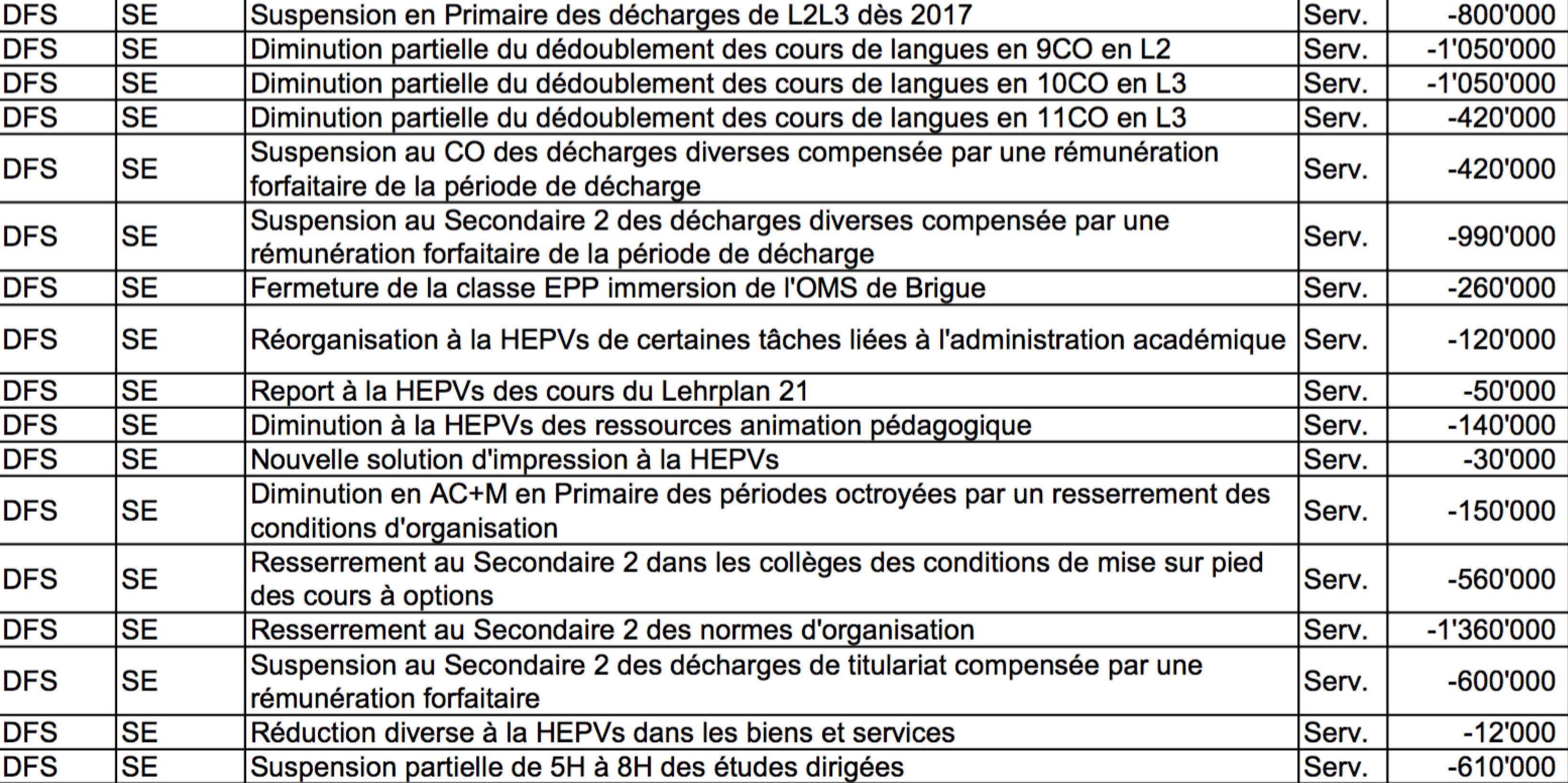 Listes des mesures d'économies ETS2 prévues et attribuées au Service de l'Enseignement